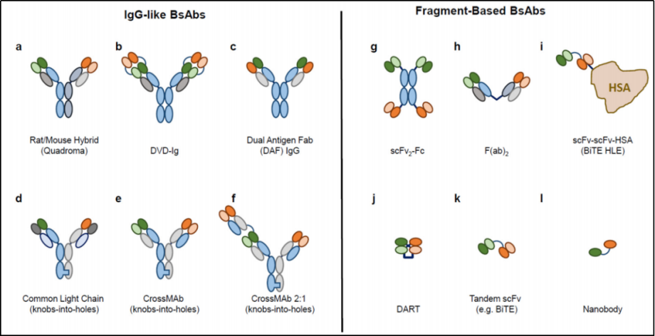图1. 双特性抗体结构示例(doi: 10.3390/ijms22105350.)