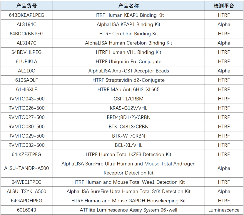 PROTAC技术近年来发展迅速,在解决传统"不可成药"靶点、克服临床耐药及提高靶向选择性方面展现出巨大潜力。虽然目前尚未有PROTAC疗法正式上市,但超过25种PROTAC候选药物正处于临床试验阶段,其应用范围包括血液系统恶性肿瘤、实体瘤和自身免疫性疾病等。然而,PROTAC分子的复杂作用机制也给检测和筛选带来了巨大挑战。正是在这样的背景下,瑞孚迪(Revvity)公司推出的HTRF(均相时间分辨荧光)和Alpha(Amplified Luminescent Proximity Homogeneous Assay)技术强强联合,为PROTAC研发提供了全方位的检测解决方案。