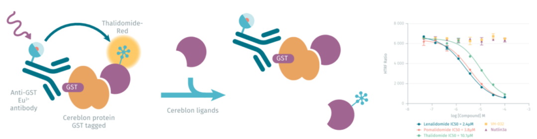 HTRF Cereblon binding kit检测原理图(左)和数据(右)